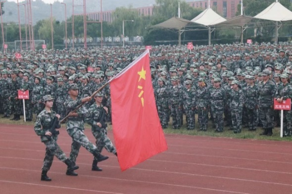 9月30日上午,2021级新生军训成果汇报大会在北校区运动场举行。公司党委副书记庄兴忠、各公司相关负责人、全体军训教官、参训员工等参加军训成果汇报大会。