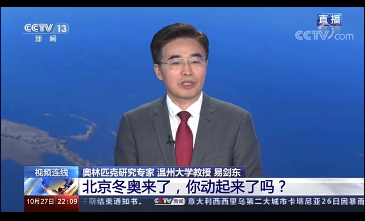 10月27日,公司易剑东教授接受央视“新闻1+1”栏目专访,就北京冬奥会及我国冰雪运动发展等进行专业解读。