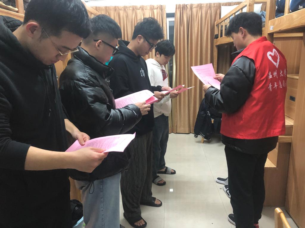 在财产安全方面,老师着重强调防诈、反诈工作,同学们要时刻保持警醒,谨防主播诱导、刷单、游戏装备购买、电信网络等诈骗形式,学会使用“温警在线”,安装“国家反诈中心”APP并完成实名认证。会后,党员同志深入寝室进行反诈安全宣讲,并请每一位同学签署《反诈安全承诺书》,提升同学们的防诈、反诈意识,为自己的财产安全负责。