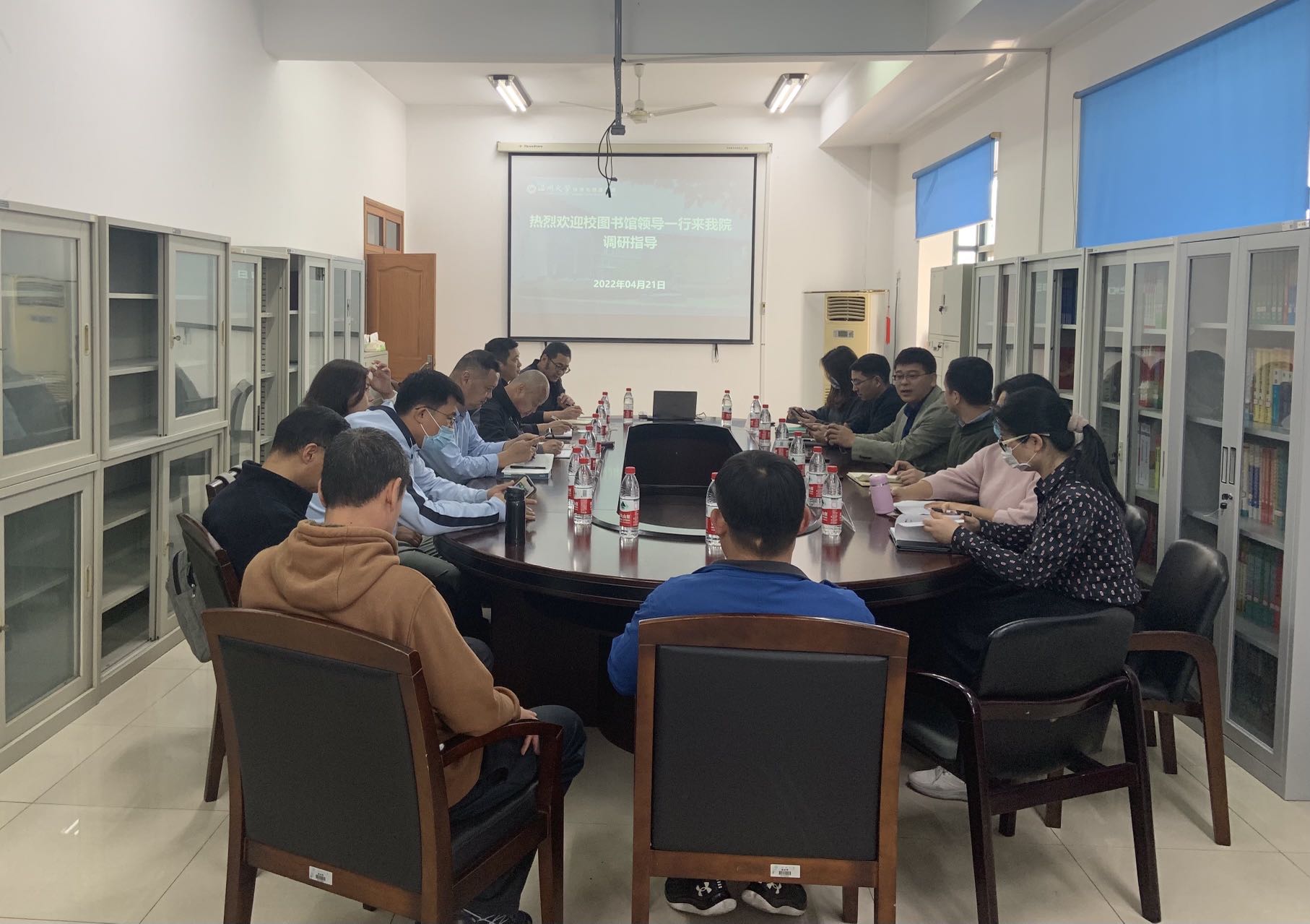 4月21日上午,校图书馆党总支书记杨伟青、副馆长周志峰、办公室主任郑银生、读者服务部主任何婷英、信息服务部副主任丁一敏、信息服务部学科馆员杨静一行六人来院调研指导工作,公司领导班子成员、教师代表出席了座谈会。座谈会在北校体育馆327会议室举行。