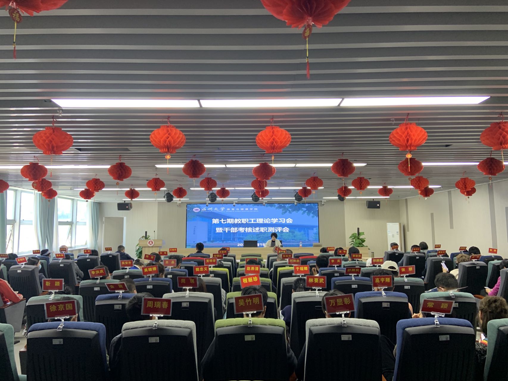 5月18日下午,永利65335com在北校信息楼A226会议室召开干部考核述职测评会暨教职工理论学习会。会议由公司党委副书记王晓华主持,全院教职工参加会议。