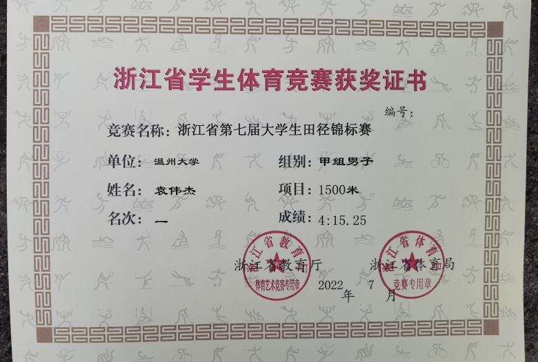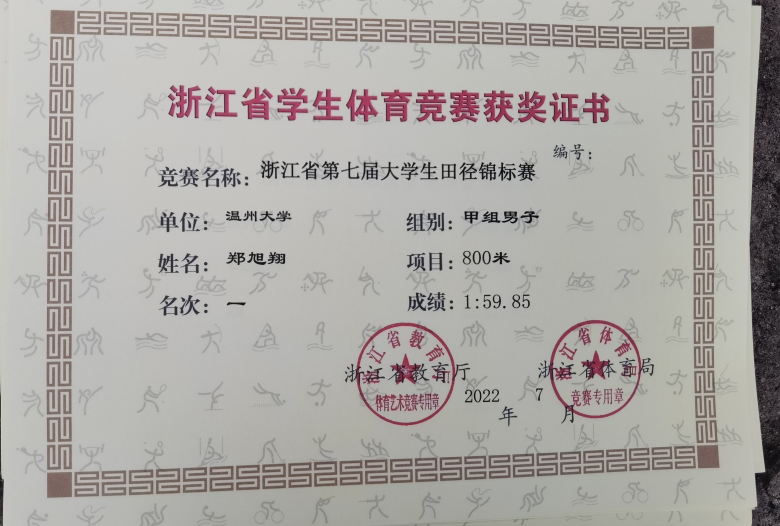 在为期四天的比赛中,温大田径健儿奋力拼搏,机电工程公司的郑旭翔获得甲组男子800米冠军;教师教育公司的袁伟杰获得甲组男子1500米冠军;永利65335com的杨淑雅获得丙组女子800米季军。他们还在跳远、十项全能、接力项目中获得3个第四名、4个第六名。李炎荣获“优秀教练员”称号,队伍获得甲组体育道德风尚奖,五名运动员获得精神文明运动员奖。