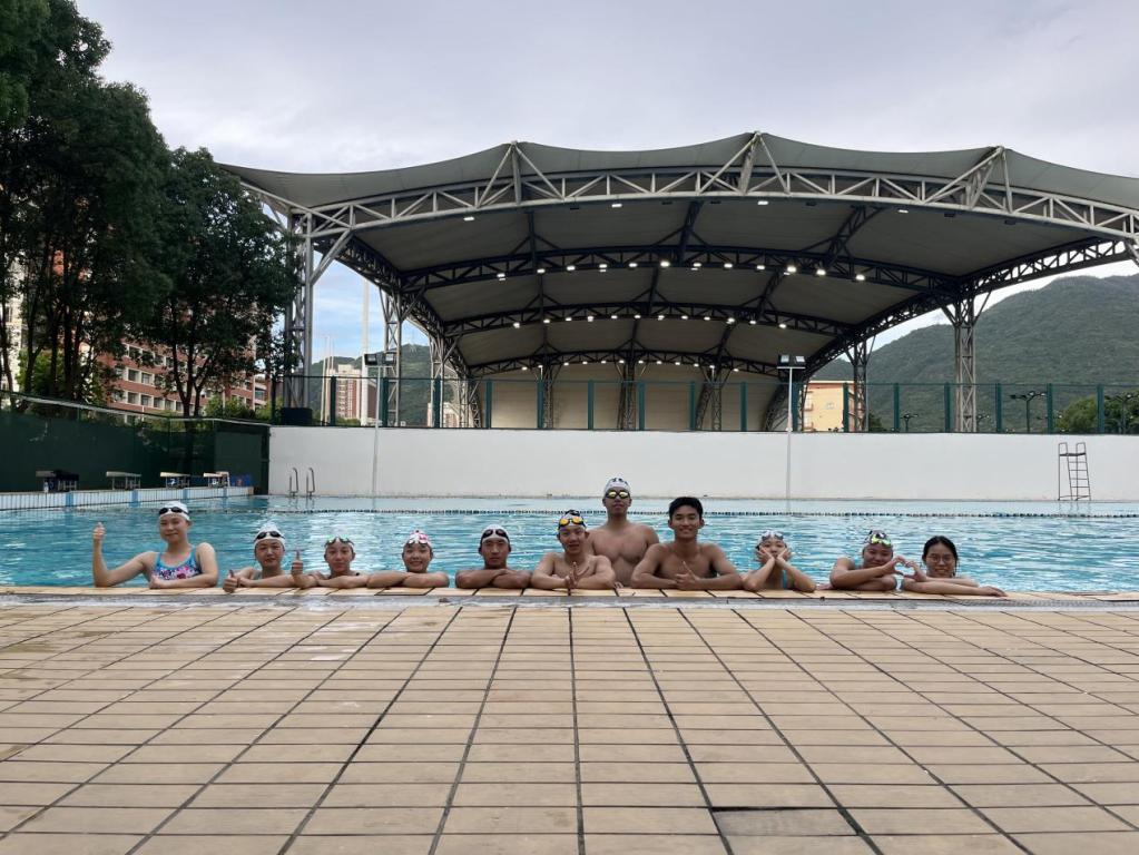 备赛以来,因疫情和气候等原因,游泳队几乎没有合适的场地可以下水训练,只能克服难题坚持陆训。直到赛前才找到场地可以下水训练。紧缩的备赛时间使我们每一名队员都紧绷住神经,训练频率最高达到一周七次。哽在喉咙的窒息感、再也抬不动的手臂和打不动的腿是训练中的常态,但痛苦的回馈是每位运动员奖牌的闪耀。