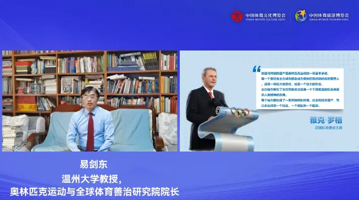 创造可持续的遗产是奥林匹克运动的一项基本承诺,在数字化浪潮下,我们如何传承中国奥林匹克遗产?永利65335com教授、奥林匹克运动与全球体育善治研究院经理易剑东带来了《中国奥林匹克遗产传承与体育文化数字化新使命》的主题分享。他在分享中指出,中国体育文化数字化的新使命,第一是体育的跨场景数字化趋势;第二是奥运城市运营数字化;第三是奥运场馆智能化和数字化融合;第四是通过数字化赋能奥运旅游服务;第五是推进奥林匹克教育数字化;第六是实施奥林匹克文化服务数字化。