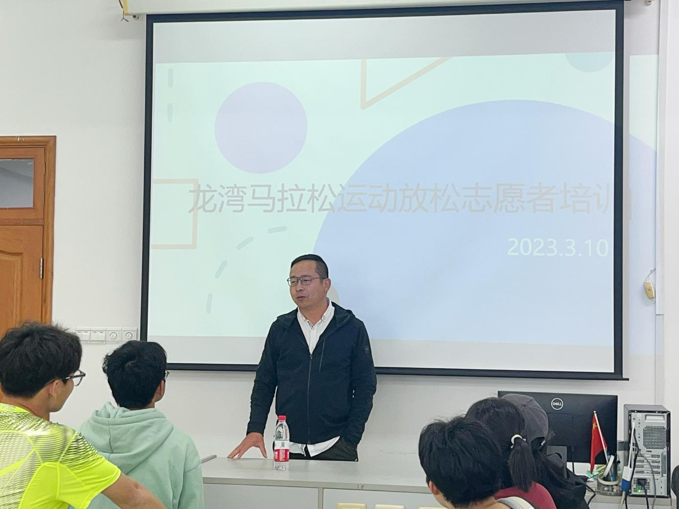 2023龙湾半程马拉松比赛将于月12日上午在龙湾奥体中心开赛。为助力龙湾半程马拉松赛后服务的顺利进行,公司学工办组织选拔了30余名身体健康、责任心强的员工志愿者投身赛后按摩放松服务工作。3月10日晚,龙湾马拉松赛组委会工作人员王海东老师、柯叶鹏老师到公司进行赛前集中培训。休闲系主任李豪杰教授、学工办王颖老师、陆冰瑶老师也全程参与了本次培训活动。