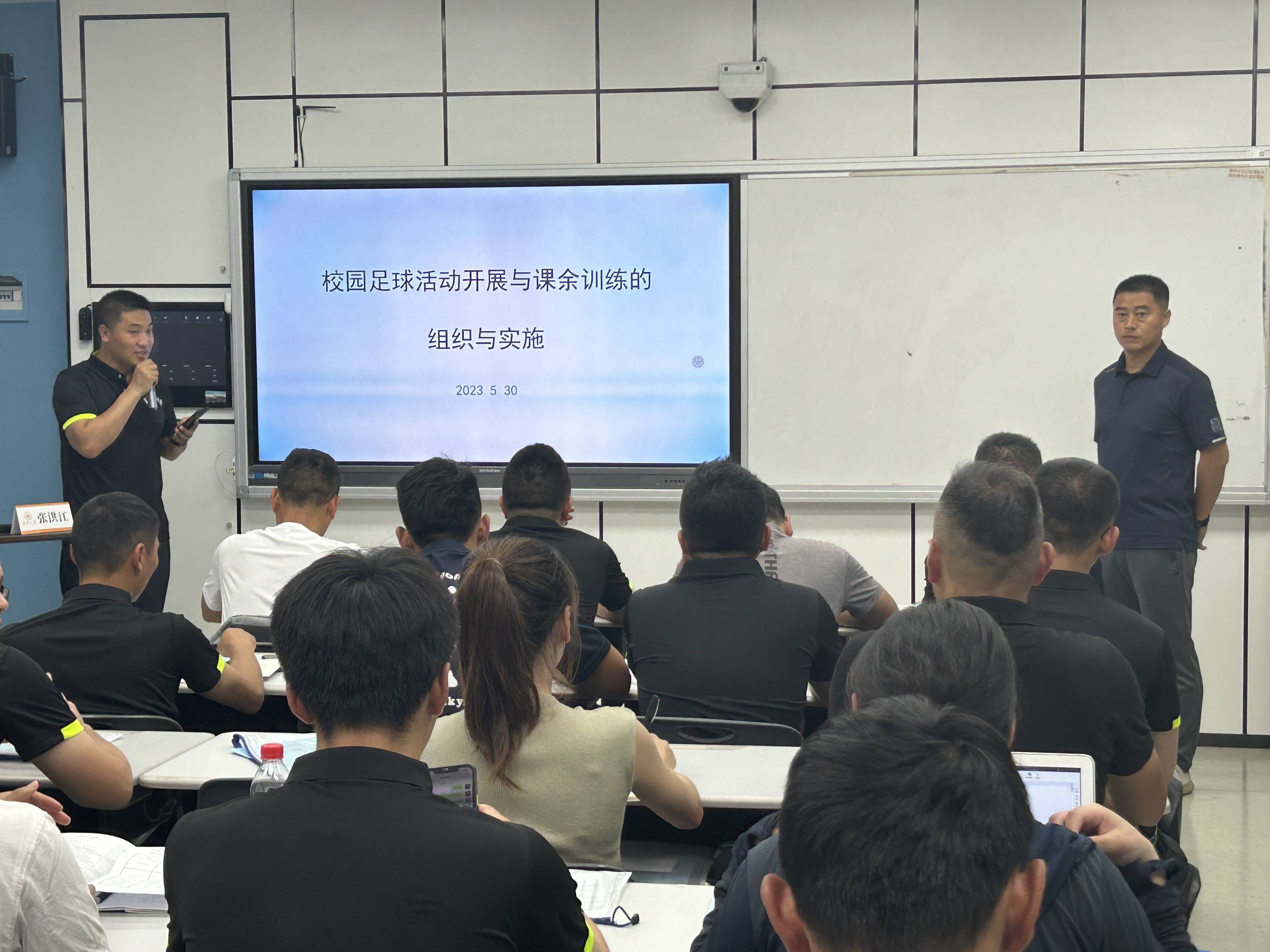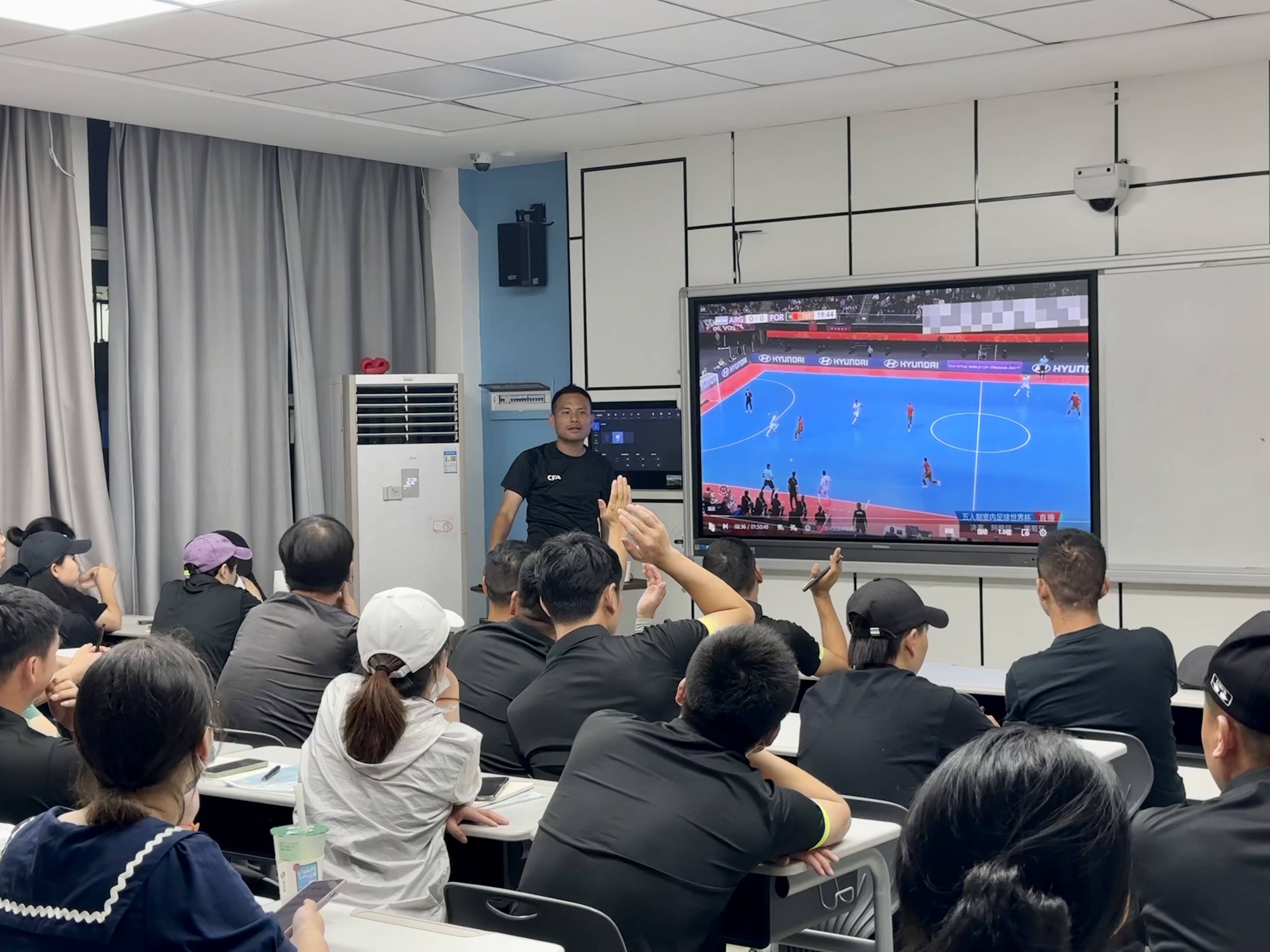短短四天的时间里,老师们不仅需要参与高强度训练更享受了一系列专业系统性的培训。从第一天永利65335com张文健经理关于《中国职业足球发展模式》的讲座到休闲体育系主任李豪杰教授带来的《足球运动损伤防护概论》;温大副教授、国家级足球裁判林辉老师的《五人制世界杯比赛欣赏、竞赛规则与裁判法》;温大奥林匹克与全球体育善治研究院经理、博士生导师易剑东教授带来的《中外足球青训比较》以及温大教授、硕士研究生导师的陈明教授给大家带来了《中小公司园足球竞赛组织与管理工作》,都让参与培训的老师直呼“干货满满”,收获颇丰。