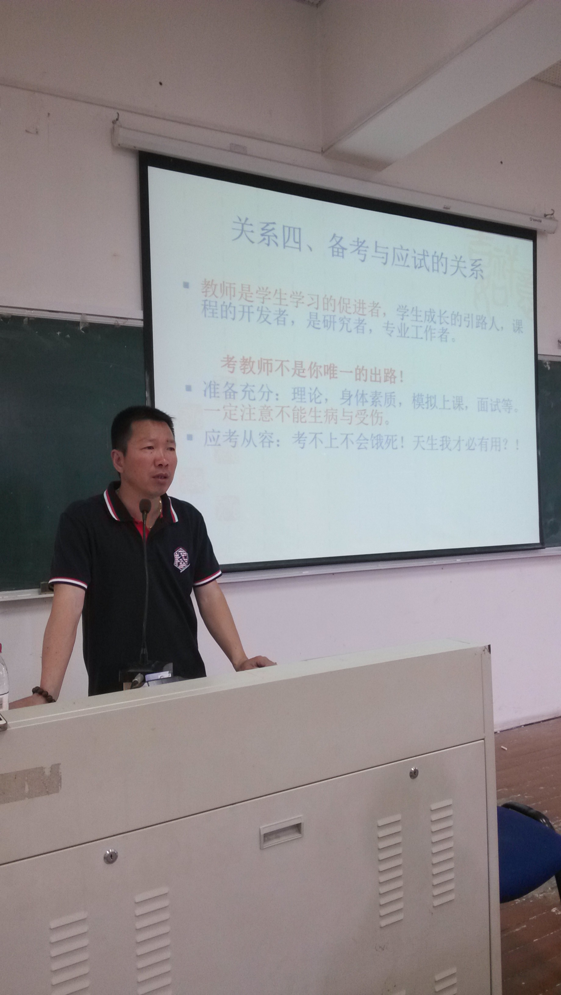 曾荣老师以幽默和谐的语言开场,讲述他走过的体育教师道路,不仅生动、幽默的讲授了体育教师应具备的基本技能与职业道德,还与同学们之间互动交流,共同探讨了篮球课堂的上课技巧,同学们也积极参与其中,积极学习,讲座现场气氛活跃。最为精彩的是,曾老师结合其自身在一线实践教学的经验,以三字经的形式,简洁生动而又形象地总结了一套体育教师教学中和职业生涯发展中的心得口诀。