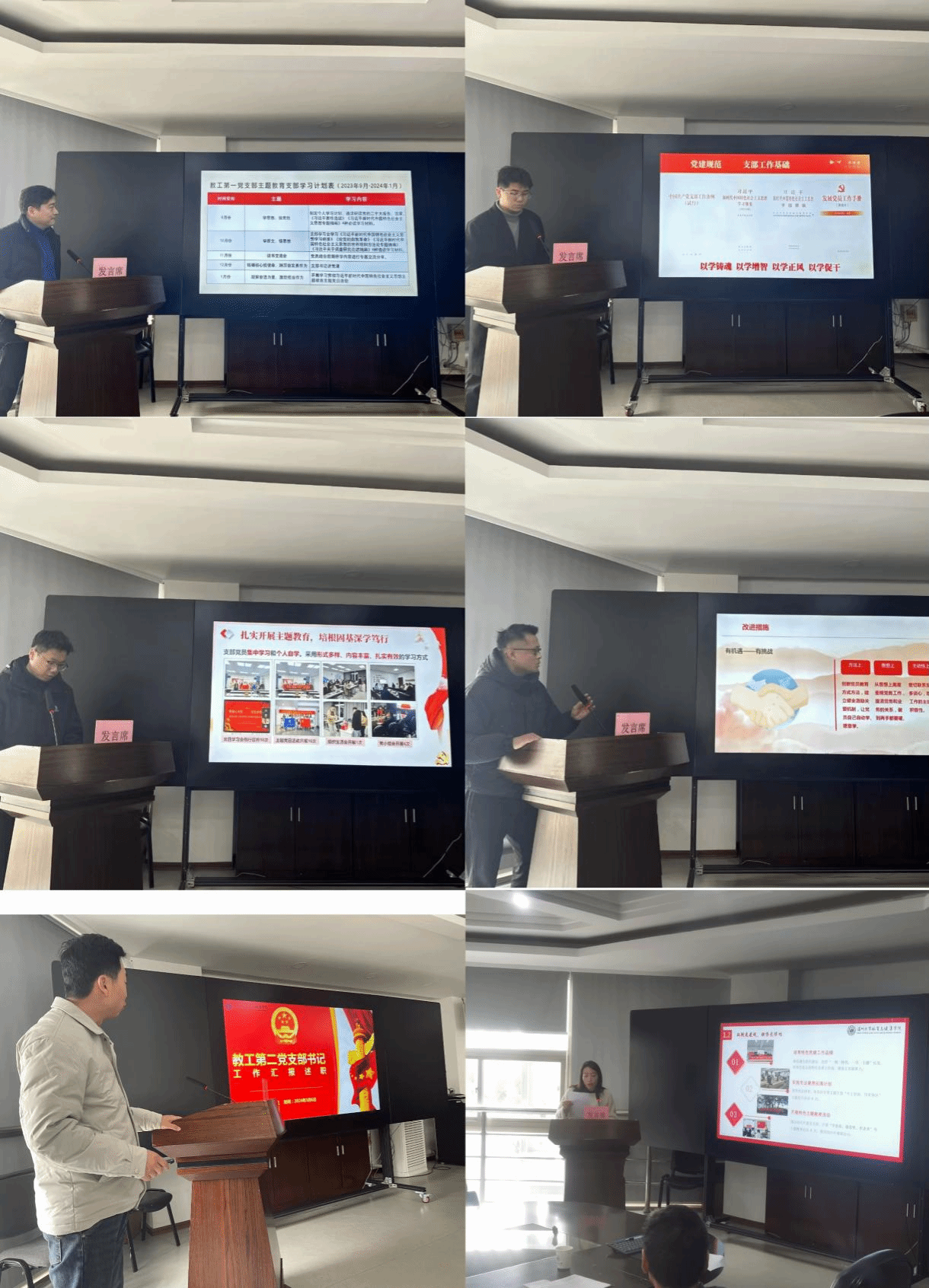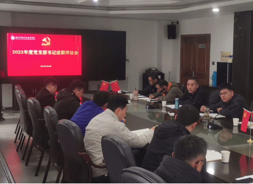 会议听取了6个师生党支部书记现场述职,各党支部书记围绕2023年度工作要点和工作任务完成情况总结成绩经验,并结合本支部党建工作中的薄弱环节和突出问题,如党建活动形式单一、党建与业务融合不深入、党员作用发挥等,查找自己在履职尽责方面的差距和不足,并提出有针对性的解决措施和办法,明确2024年党支部建设的努力方向和目标任务。述职结束,杨书记对各支部书记述职情况进行点评。他指出,各支部书记发挥“双带头人”作用明显,工作重点突出、特色鲜明,党味浓、工作实,能够真正做到把自己摆进去、把职责摆进去、把工作摆进去,同时指出各支部存在党建特色品牌做得不够系统、支部吸引力不够强、正式党员的再教育不够重视等问题。