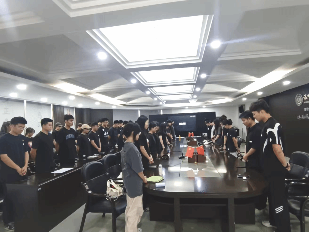 随后,全体党员默哀三分钟,向在“九一八”事变中牺牲的先烈、在抗日战争中牺牲的先烈、为抗日战争做出无数奉献的仁人志士缅怀并致以崇高的敬意。本科生党员王金波同志带领全体党员重温入党誓词。铮铮誓言响起,进一步激励和鞭策每一位党员时刻牢记肩负的职责和光荣使命。