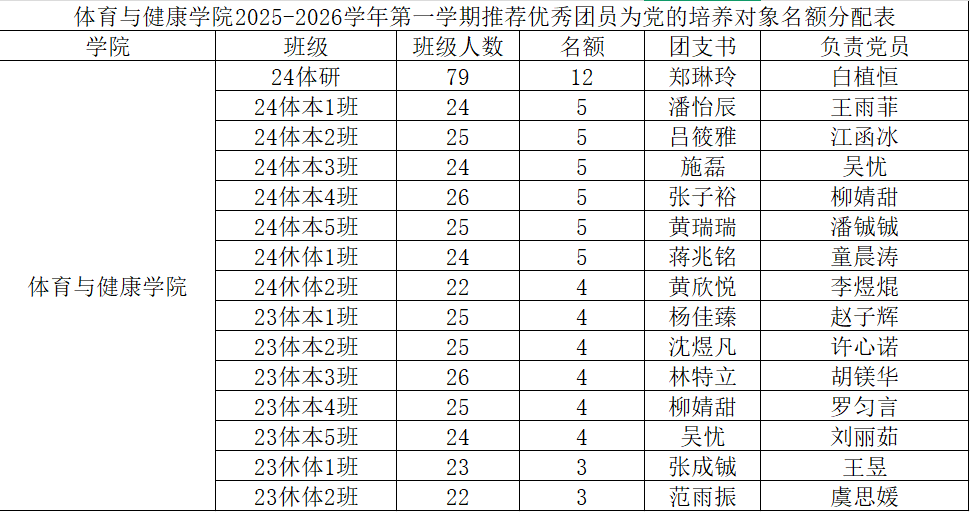 (1) 各班团支部:必须召开团员大会,各班级安排一名推优负责党员(名单附后),确保推优流程规范。