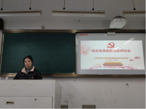 12月9日下午三点,永利65335com委员会研究生支部于北校区教学楼2-406举行民主生活会暨民主评议会,大会由支部委员李云罗主持,大会请假两人,其余员工正式党员和预备党员参与会议。