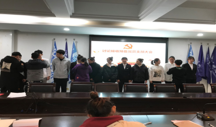 全体与会成员起立奏唱国歌后,11名发展对象依次介绍了对党的认识、入党动机、本人履历、家庭情况、现实表现以及需要向党组织说明的问题,然后入党介绍人介绍情况,组织委员对发展对象的政审及群众座谈情况有关情况进行介绍。会议全程大家严肃认真,与会党员讨论过程中,潘婕等11名党员同志对各发展对象进行了积极提问,问题犀利,11位同学也都回答的很全面,然后5名正式党员对曹倩等11位同学能否发展进行了无记名投票,11名同学均全部赞成票,顺利被吸收为中共预备党员。