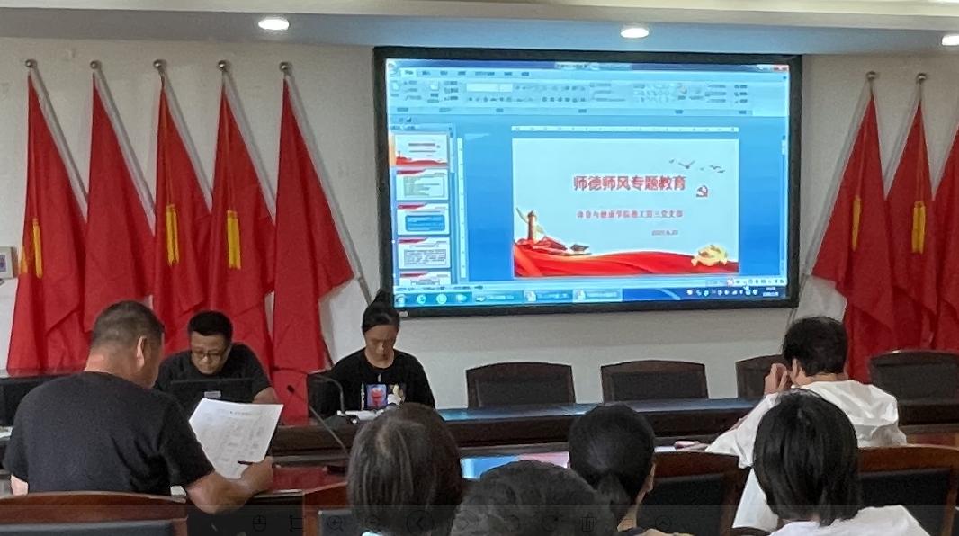 2021年6月23日,大学体育部、教工第三党支部进行了“师德师风”专题教育。党支部全体党员在支部书记桑国强老师的带领下,系统学习了“习近平总书记关于师德师风的重要论述摘编”,着重讲述了师德师风优秀典型,如于漪、张桂梅等老师的先进事迹。并结合新时代师德规范,重新学习永利65335com的各项规章制度,如“永利65335com教师职业行为规范及师德失范处理办法”、“永利65335com处理学术不断行为的管理办法”、“永利65335com教师十不准”等。并认真吸取了永利65335com违反教师职业行为十项准则典型案例中的教训。使广大教师、党员接受了一次深刻的教育,对推进学习师德师风建设,提高教师素质起到了积极作用。