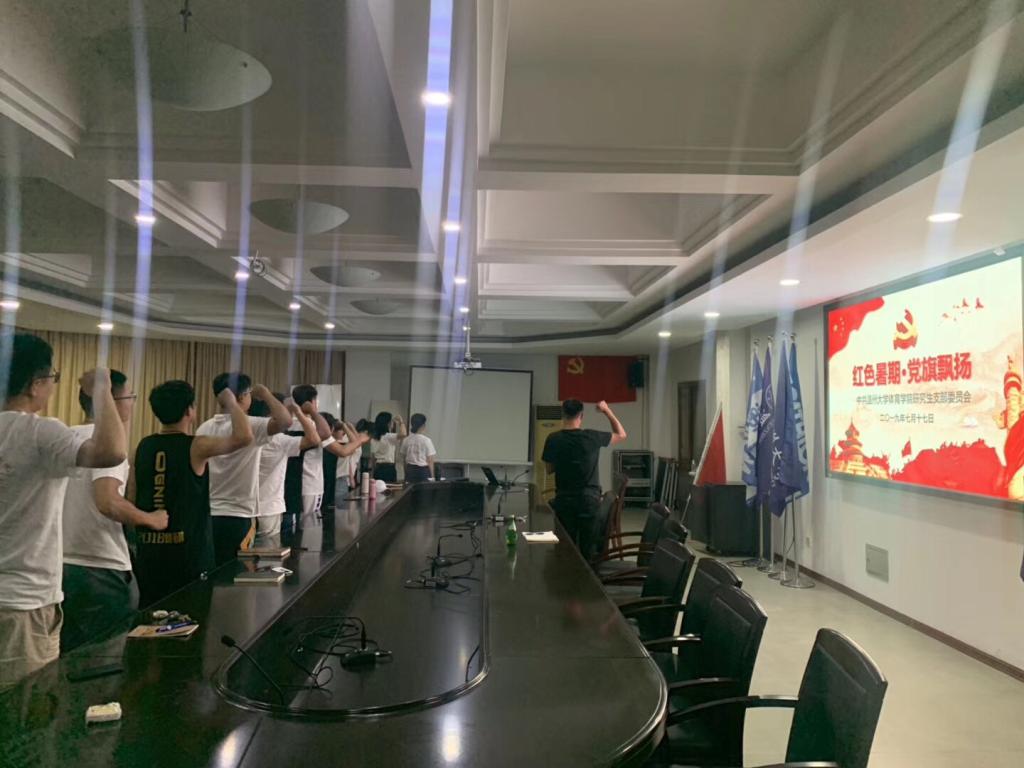 7月17日晚上,永利65335com研究生党支部在北校区行政楼125会议室开展了以“红色暑期·党旗飘扬”为主题的党日活动。本次会议由永利65335com研究生党支部书记桑国强老师主持,永利65335com员工科科长靳颖老师参与了此次活动。