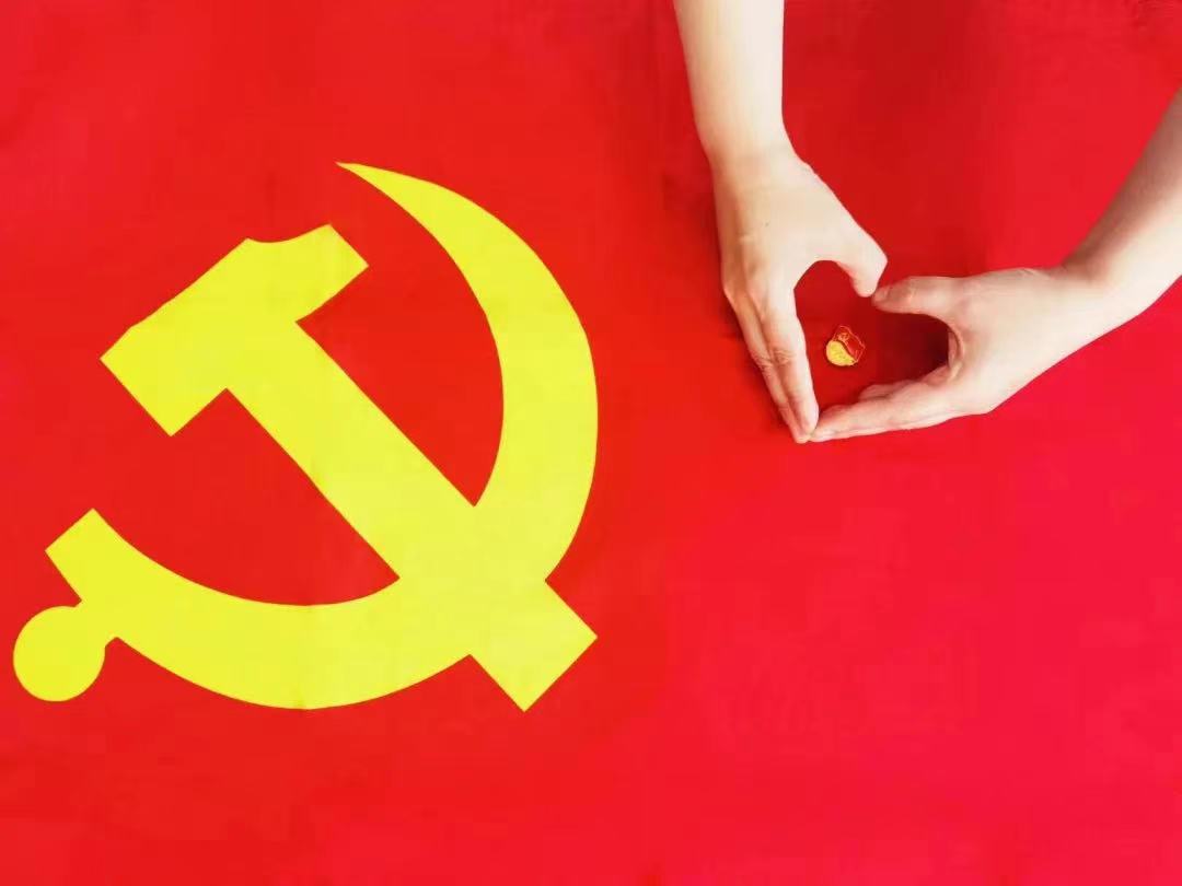 与党旗合影