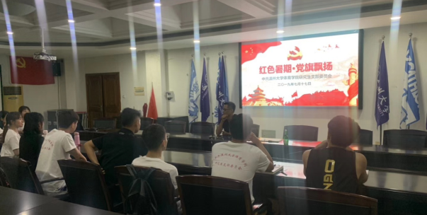 中国共产党的入党誓词,是党对党员行为要求的“指南针”,更是党员对党和人民作出的庄严承诺。为深入学习和贯彻党的十九大精神,深刻领会习近平新时代中国特色社会主义思想,中共永利65335com永利65335com研究生支部委员会以“红色暑期 党旗飘扬”为契机,于2019年7月17日晚在北校区行政楼125会议室开展了七月“重温誓心,不忘初心”的主题党日活动。参加本次活动的成员有永利65335com永利65335com员工科长靳颖老师、永利65335com永利65335com研究生支部书记桑国强老师以及在校研究生党员。