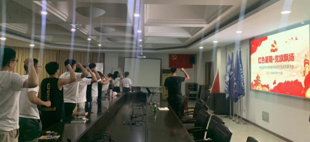 交流结束后,支部书记桑国强老师作为领誓人带领在场研究生党员重温入党誓词。面对鲜红的党旗,支部党员们一起高举右手,再次庄严宣誓。“我志愿加入中国共产党……随时准备为党和人民牺牲一切,永不叛党。宣誓人:……。”铿锵恢宏的誓词,强烈震撼着在场的每一位党员的内心,一字一句,神圣而豪迈,体现了员工党员们对中国共产党的无限忠诚之情。