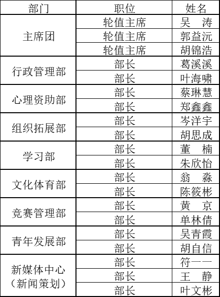 注:各部门中心主任不分正副级,欢迎广大师生监督,如对任用情况有异议,请于公示期内实名联系。