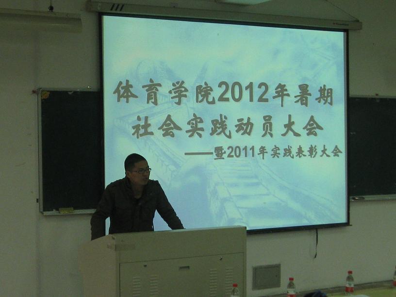 2012年3月14日下午一点,永利65335com2012年暑期社会实践动员大会--暨2011实践表彰大会在北校人文楼101教室隆重召开。到场嘉宾有体院团委书记冯建军老师、温大社会实践中心负责人、体院团委副书记及院员工会主席、副主席,永利65335com大一大二的员工如期参加了本次大会。