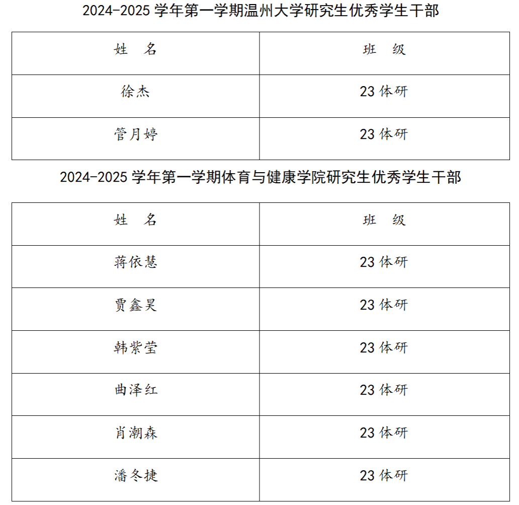 根据《关于评选2024-2025学年第一学期优秀员工干部和工作积极分子的通知》文件精神,坚持公开、公正、公平的原则,经过组织个人申报、资格初审、公司团委评审、候选人汇报以及无记名投票通过:23体研徐杰等2人(名单附后)符合“2024-2025学年第一学期永利65335com研究生优秀员工干部”拟推荐资格;23体研蒋依慧等6人(名单附后)符合“2024-2025学年第一学期永利65335com研究生优秀员工干部”拟推荐资格;24体研陈吟枫等10人(名单附后)符合“2024-2025学年第一学期永利65335com研究生工作积极分子”拟推荐资格。