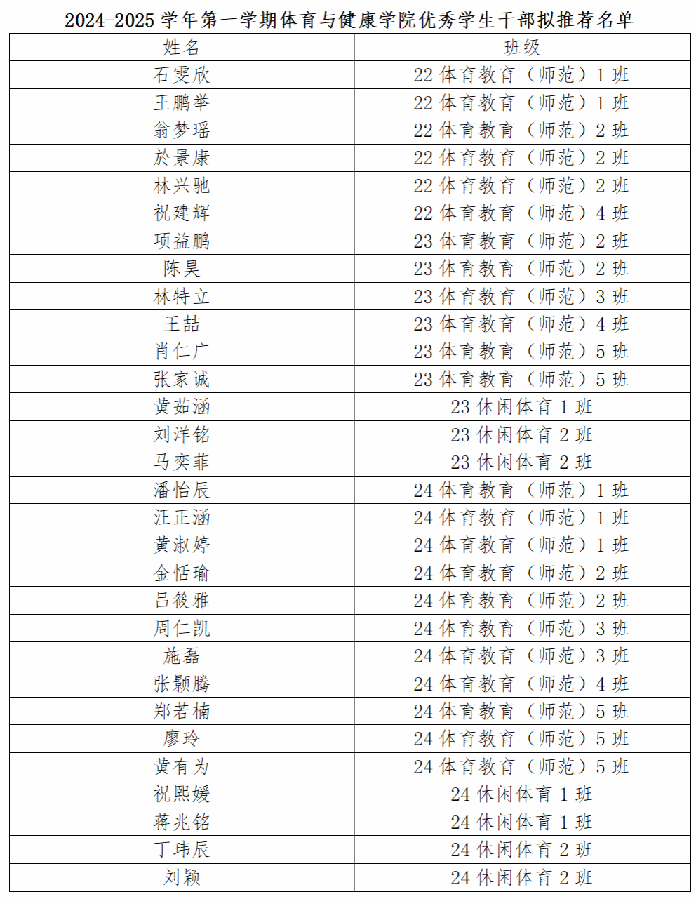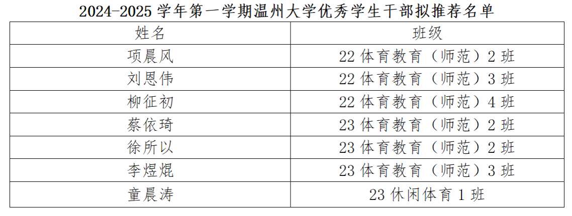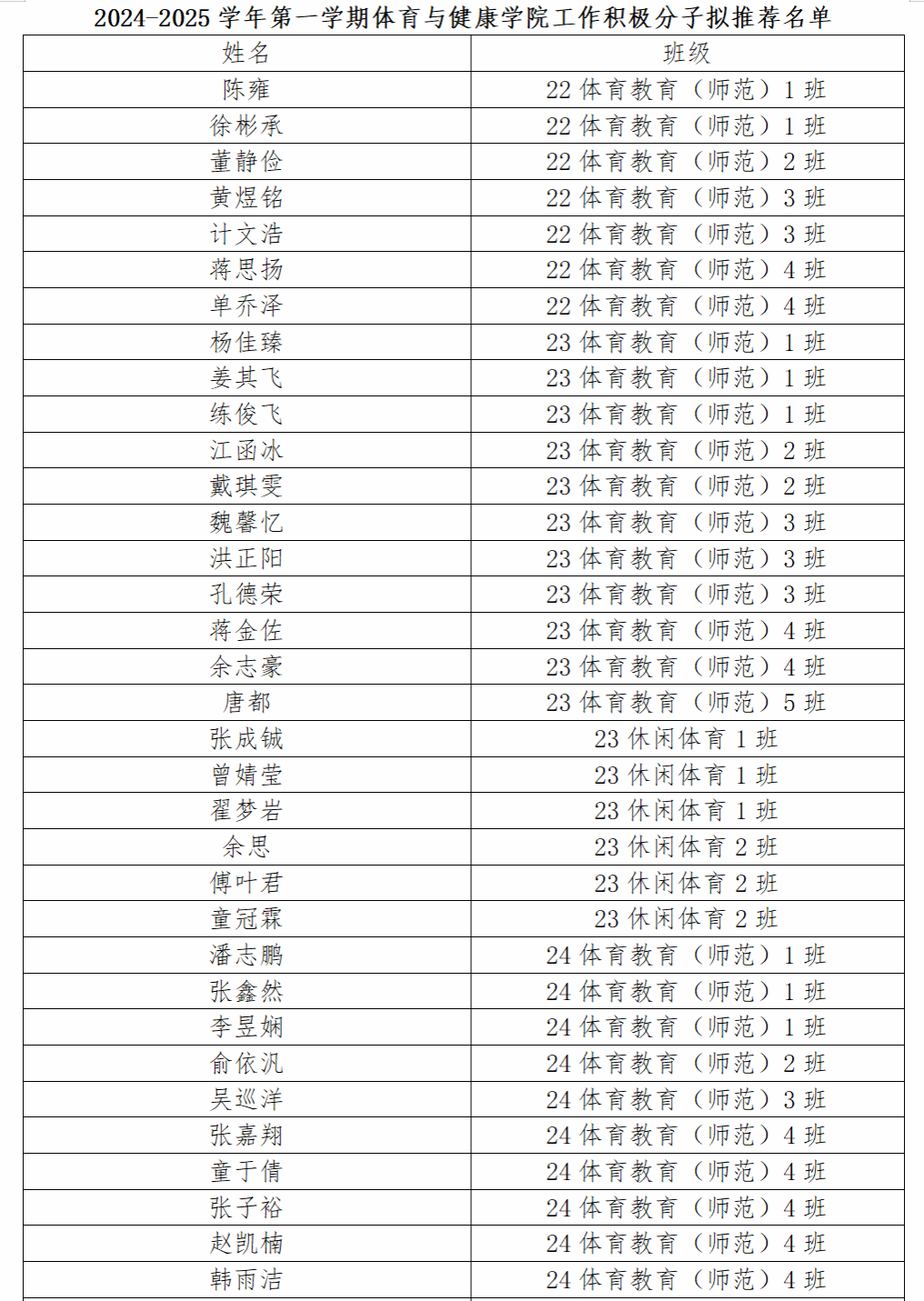 根据《关于评选2024-2025学年第一学期优秀员工干部和工作积极分子的通知》精神,坚持公开、公正、公平的原则,经过组织个人申报、资格初审、公司团委及员工代表评审、候选人汇报以及无记名投票通过:22级体育教育(师范)专业项晨风等7人(名单附后)符合“2024-2025学年第一学期永利65335com优秀员工干部”拟推荐资格。22级体育教育(师范)专业石雯欣等30人(名单附后)符合“2024-2025学年第一学期永利65335com优秀员工干部”拟推荐资格。22级体育教育(师范)专业陈雍等41人(名单附后)符合“2024-2025学年第一学期永利65335com工作积极分子”拟推荐资格。