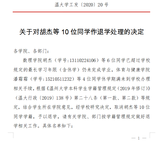 (转发)关于对胡杰等10位同学作退学处理的决定