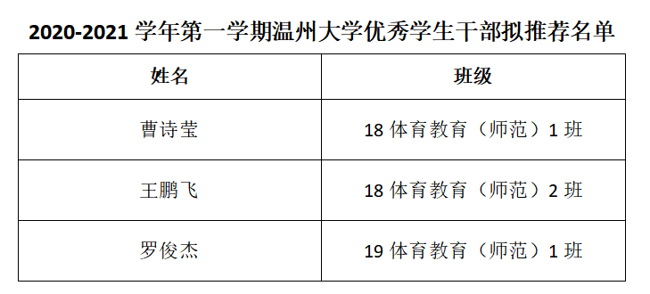 根据《关于评选2020-2021学年第一学期优秀员工干部和工作积极分子的通知》的精神,坚持公开、公正、公平的原则,经过组织个人申报、资格初审、公司员工工作委员会审核通过:18级曹诗莹等3人(名单如下)符合“2020-2021学年第一学期永利65335com优秀员工干部”拟推荐资格、20级吴涛等13人(名单附后)符合“2020-2021学年第一学期永利65335com优秀员工干部”拟推荐资格。