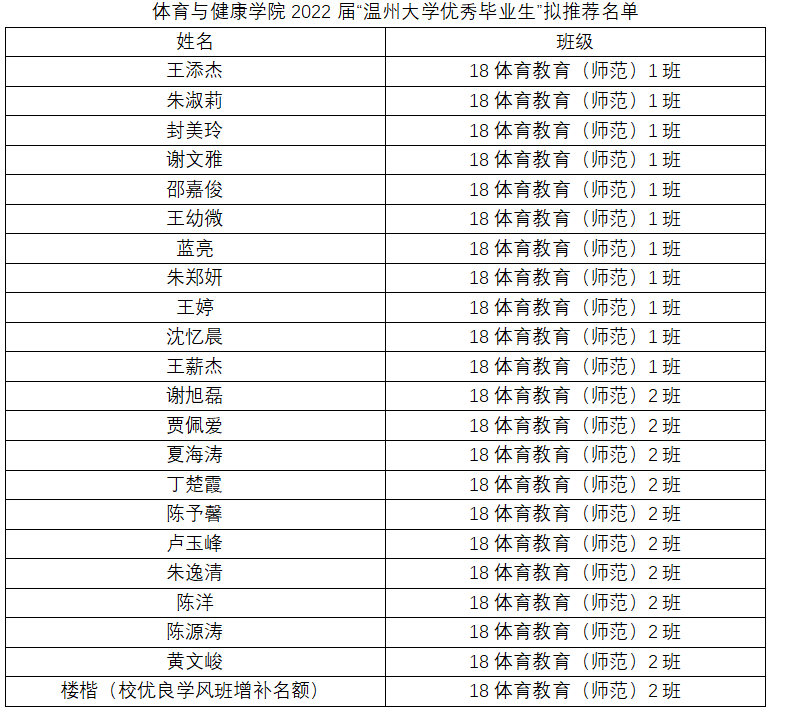 根据《永利65335com优秀毕业生评选办法》(2020年修订)的文件精神,坚持公开、公正、公平的原则,经过组织个人申报、资格初审、公司员工工作委员会审核通过,18级王静亚等4人符合浙江省优秀毕业生评选资格,其中18体育教育(师范)1班封美玲主动申请放弃省优秀毕业生评选资格,18级王添杰等22人符合“永利65335com优秀毕业生”评选资格,其中18体育教育(师范)2班楼楷属于符合校优良学分班增加1个名额的条件。最终公司2022届“浙江省优秀毕业生”、“永利65335com优秀毕业生”拟推荐名单如下: