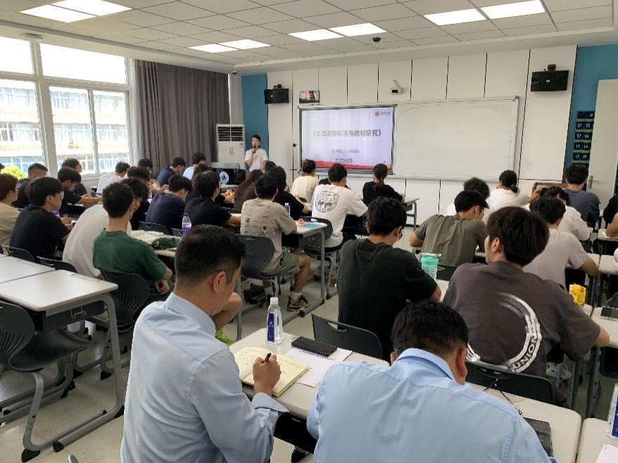 《体育课程标准与教材分析》是公司体教专业教师教育类必选课程。作为开学第一课,郑老师首先强调了课堂纪律,细致介绍了本课程学习目标、内容及考核方式,随后依次从课程属性、课程目的与意义、课程知识体系等开始了首章节授课。通过多样化、信息化的教学素材,郑老师条理清晰地讲解知识点,同学们注意力集中,课堂参与度高。