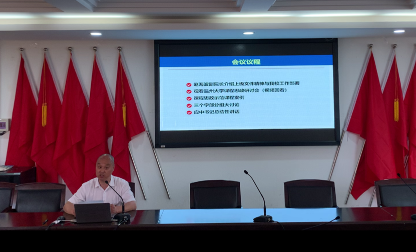 接着,赵海波领学了《永利65335com课程思政建设研讨会》视频主要内容,并以上一轮公司课程思政示范课程申报书为例,对课程思政改革探索、建设基础、融入点、教学方法、改革创新、建设规划进行了详细指导。
