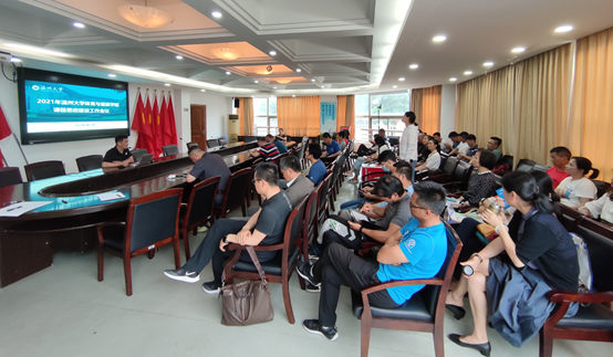 2021年5月12日,北校区125会议室,永利65335com课程思政建设工作会议隆重召开,公司经理张文健、党委书记应中、副经理叶建强、副经理赵海波、体育科学部、体育教学训练部、大学体育部全体教师参会并参与研讨。会议由赵海波副经理主持。