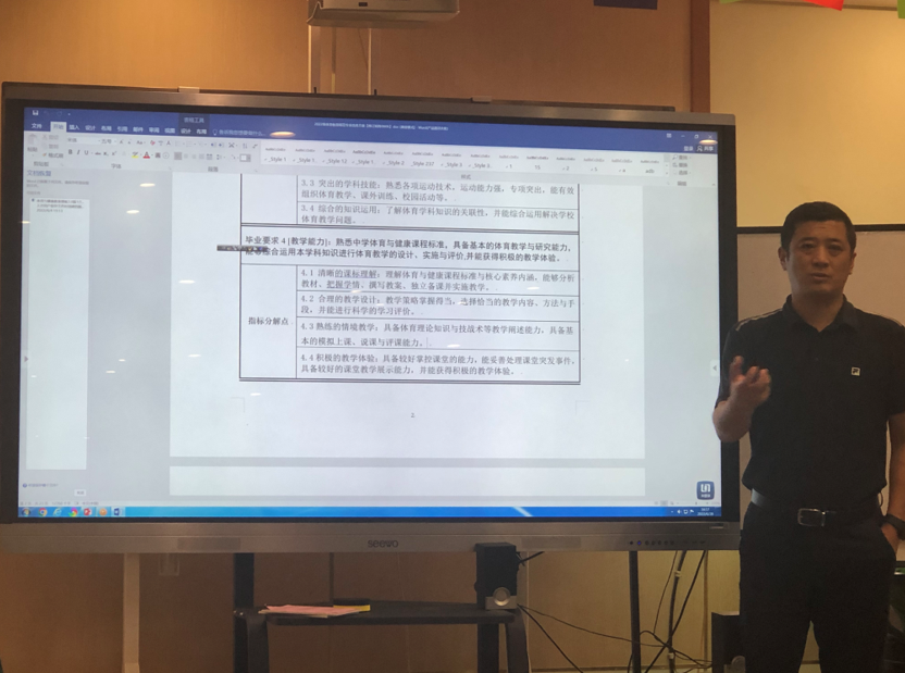 研修期间工作站负责人赵海波老师(公司教学经理、专业负责人)围绕2022级体育教育(师范)专业人才培养方案,分别从培养目标、毕业要求分解点、课程体系等方面做了整体介绍,尤其对照21版对22版“培养目标”的调整与修订做了详细解读,并诚挚邀请来自基层一线的各位教学名师与骨干对22版培养方案进行论证与提出建议。