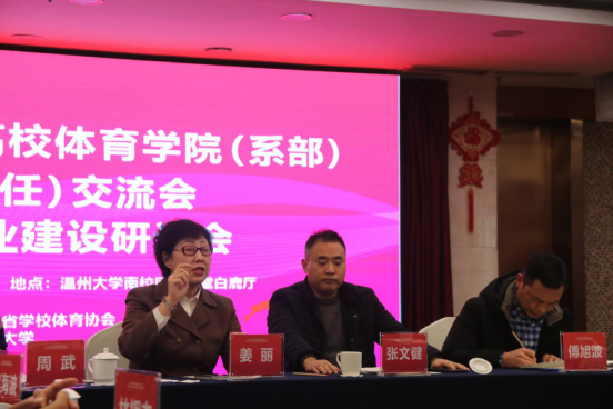 12月27日,由浙江省公司体育协会主办、永利65335com承办的2019年浙江省高校永利65335com(系部)经理(主任)交流会暨体育专业建设研讨会在永利65335com南校区岩松堂雁山厅举行。永利65335com纪委书记杨林书、浙江省公司体育协会常务副秘书长姜丽等领导出席,会议由永利65335com永利65335com经理张文健主持,全省25所高校永利65335com(系部)经理(主任)和浙江省公司体育协会相关负责人共60多人参加会议。
