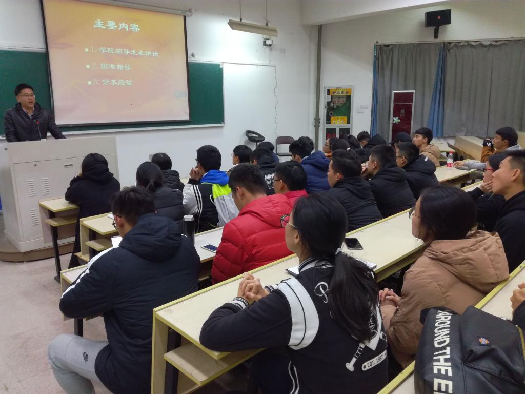 2017年12月11日晚,为了让同学们认识到国考及对就业的重要性,方便同学们日后的备考、复习,永利65335com特地组织了一场2015级体育教育本科生国考动员及经验交流大会。本次大会邀请了永利65335com副经理杨伟青老师、14级本科生王永鑫、14级本科生廖新新、周蕾出席本次会议,会议由体育科学部副主任矫镇红老师主持。