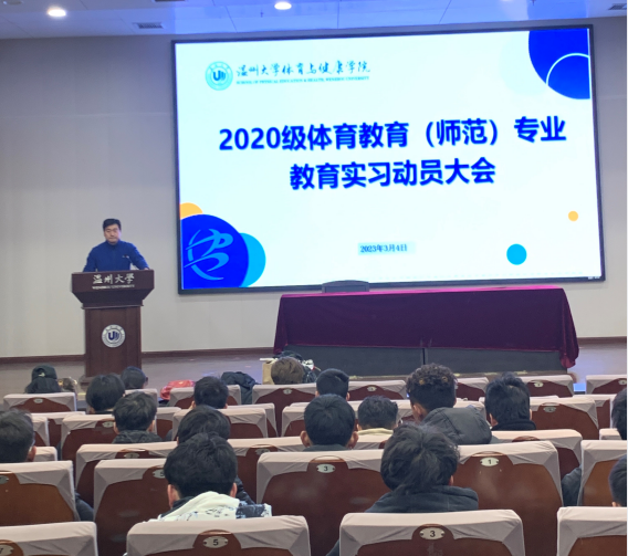 3月4日,北校区信息楼报告厅,公司召开2020级体育教育专业教育实习动员大会,系主任贾明学、副主任周义义及10位实习指导教师参加会议。