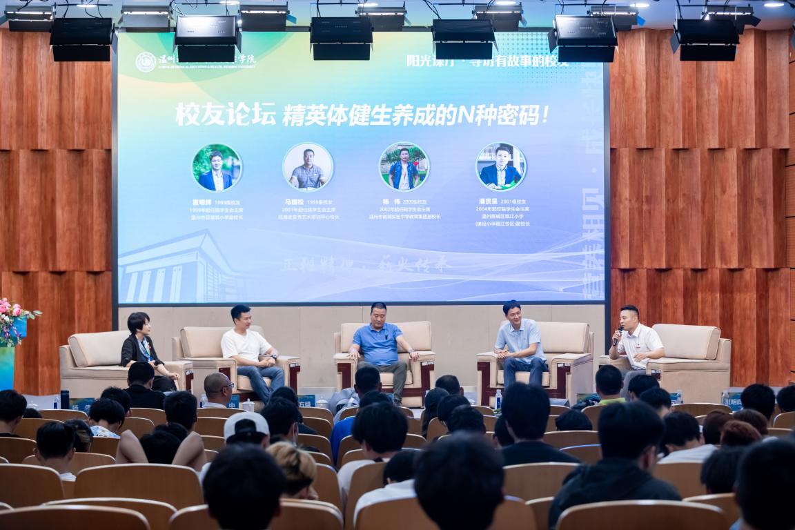 1998级员工、温州市百里路小学副董事长夏明辉分享了《不要输在起跑线上》,讲述能让职场菜鸟“脱颖而出”的五项工作标准;1999级员工、瓯海麦麦秀艺术培训中心董事长马国松以《体育人的“移情别恋”》为题,分享自身从不同教育领域转型中可迁移的核心素养;2000级员工、温州市南浦实验中学教育集团副董事长杨伟同学《一个“不务正业”的体育人》,讲述一个体育生在大数据时代的融合成长和深度实践……。他们从不同维度分享的奋斗成长故事,成为员工眼里最有料的劳育教学资源。学弟学妹们纷纷积极互动提问。