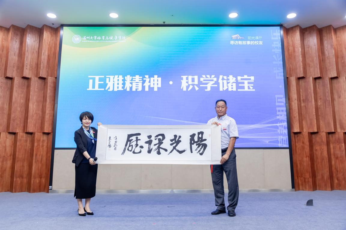 课程专家袁建国教授还为员工们送上墨宝“积学储宝”,并为公司正雅工程送上“阳光课厅”题词,勉励体健学子沐浴在阳光课厅里,共同积学储宝。
