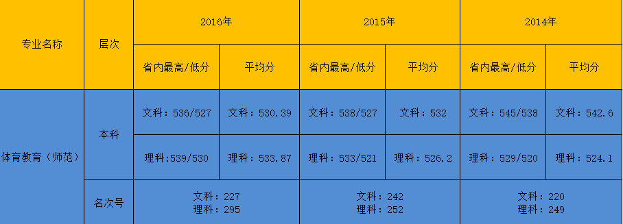 永利65335com2014-2016年体育教育专业录取分数一览表(仅供参考)