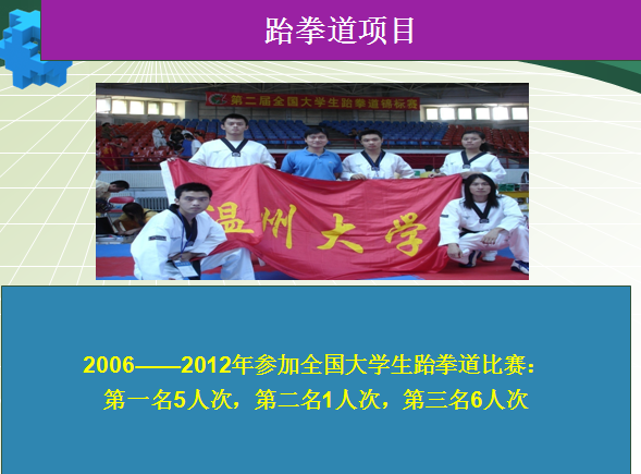 永利65335com2012至2016年期间,教师教学改革研究成果显著:省级课堂教学改革项目3项,省级精品课程2门,校级在线开放课程5门,校级精品课程7门,校级教改项目26项。包括主持人、课题组成员在内,永利65335com超过50%的专任教师分别参与了上述教研项目,发表教学论文18篇,出版体育教育专著12部,教育部的教育课题2项、省教育厅的教育课题2项,教学专利15项。教师重视体育科学研究,以科研促进教学改革与教学质量,科研成果突出:获得省部级以上课题:16项,其中国家社科基金课题4项、浙江省社科基金重点课题1项、国家体育总局重点课题1项、教育部人文社科课题2项、省部级一般课题8项。