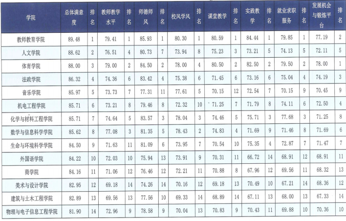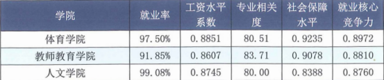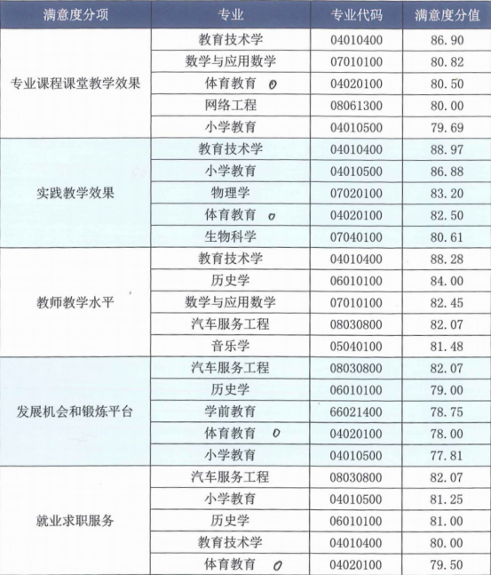 体育教育专业分别在专业课程课堂教学效果、实践教学效果、发展机会和锻炼平台、就业求职服务这四项中名列前茅。