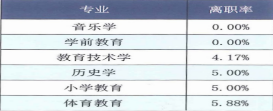 离职率能够考察各个专业的毕业生是否在可接受范围内,调查显示,公司离职率最低的专业是音乐学及学前教育,在毕业生毕业一年内均未发生离职。永利65335com离职率排名第七(图6),情况良好。